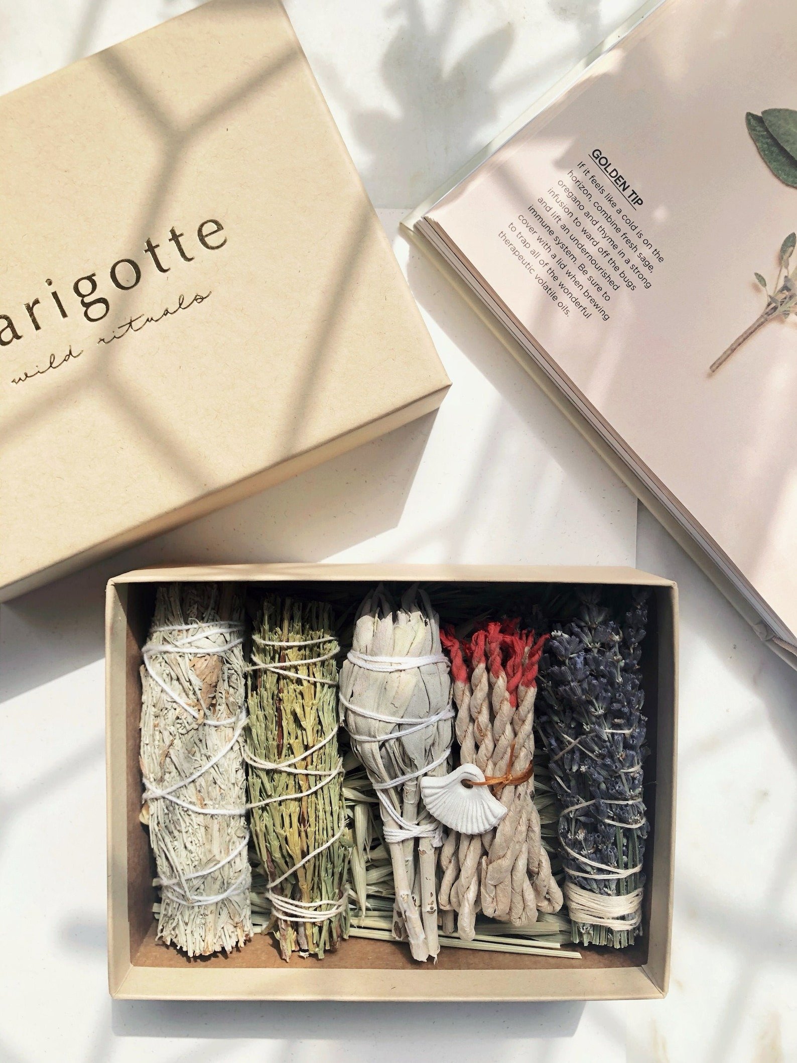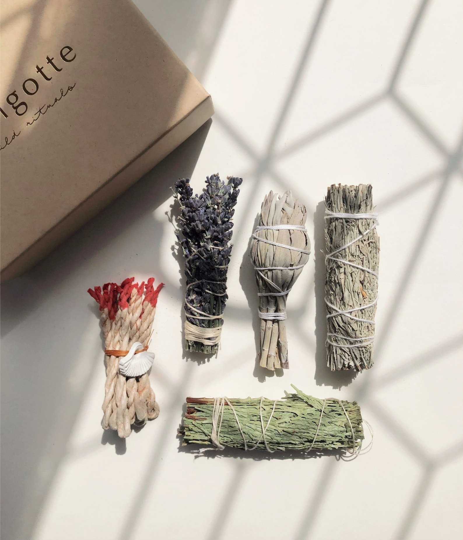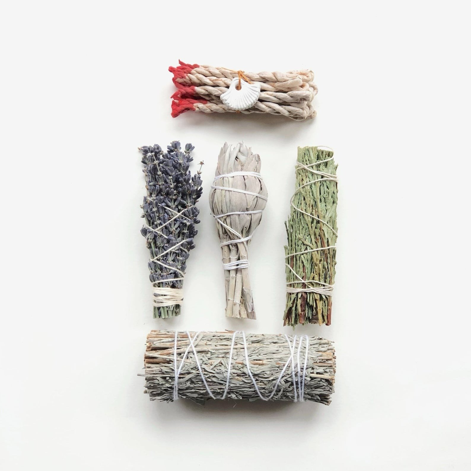 Nettoyez et purifiez l’énergie de votre maison ou de votre personne avec ce magnifique kit rituel fait main Positive Vibes. Ce kit de maculage est livré avec :